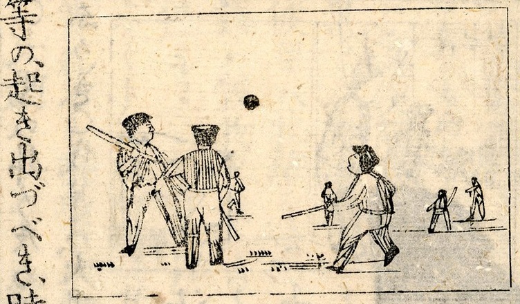 Sources: Poem – SABR Baseball Research Journal 1995: 156; Image – The Earliest Known Japanese Baseball Piece, 1887 Woodblock (Lelands.com).